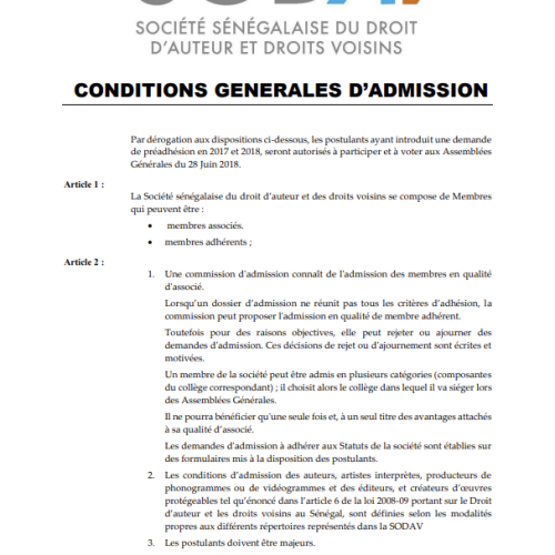 La SODAV - Société Sénégalaise du Droit d’Auteur et des Droits Voisins, créée le 07 Mars 2016 en remplacement du Bureau Sénégalais du Droit d’Auteur (BSDA) et régie par un certain nombre de textes.