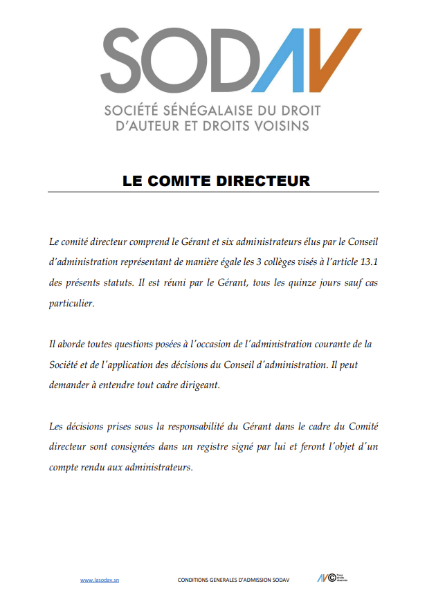 La SODAV - Société Sénégalaise du Droit d’Auteur et des Droits Voisins, créée le 07 Mars 2016 en remplacement du Bureau Sénégalais du Droit d’Auteur (BSDA) et régie par un certain nombre de textes.